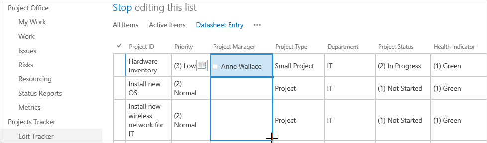 - Click Projects Office on the Quick Launch to see your changes.