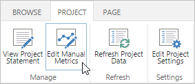 - Click the Project ribbon tab, and click Edit Manual Metrics.
