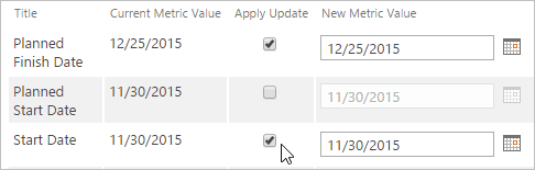 - Change the Start Date to today and the Planned Finish Date to a date in the future, then click Update.