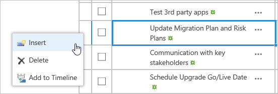 Note: See here for more information on indenting, out-denting, moving and deleting tasks. The important thing to realize about re-planning in SharePoint is that for changes that affect other items to be realized, you have to open the plan in Project and sync it, as SharePoint cannot do any recalculation – this can only be done in Project.