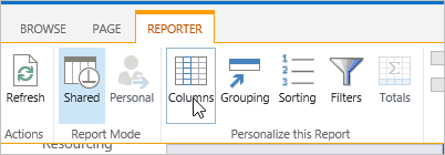 It is very important to remember that the personal report is the report that will load first whenever you visit the page. There will be no indication of this when you land on the page. The only way to tell if a report is actually a Personal one, is to expose the Reporter Tools ribbon.
