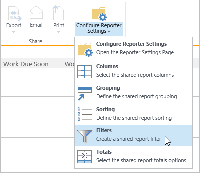 - Click in the Work Due Soon report header to activate the Reporter Tools ribbon.